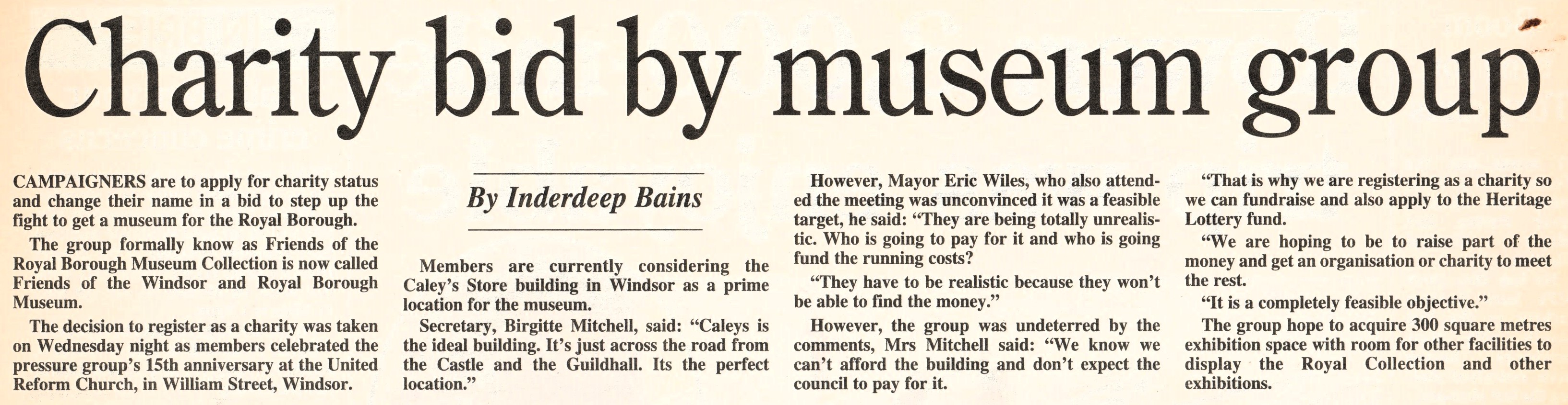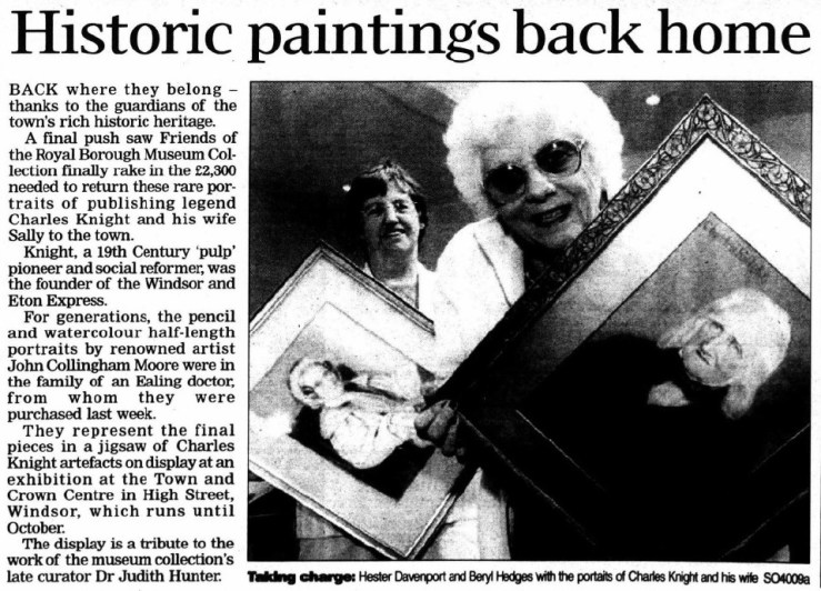 In fact, the Friends rescued paintings of Charles Knight and his wife, Sally, in 2004, which became part of the Collection. He was the founder of The Windsor Express.