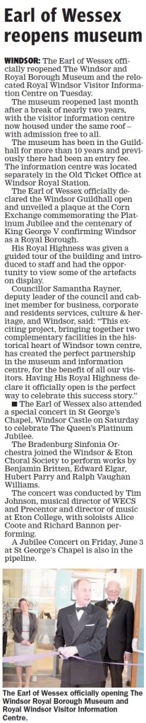 See also the BBC News article “The Queen opens the Windsor and Royal Borough Museum“.